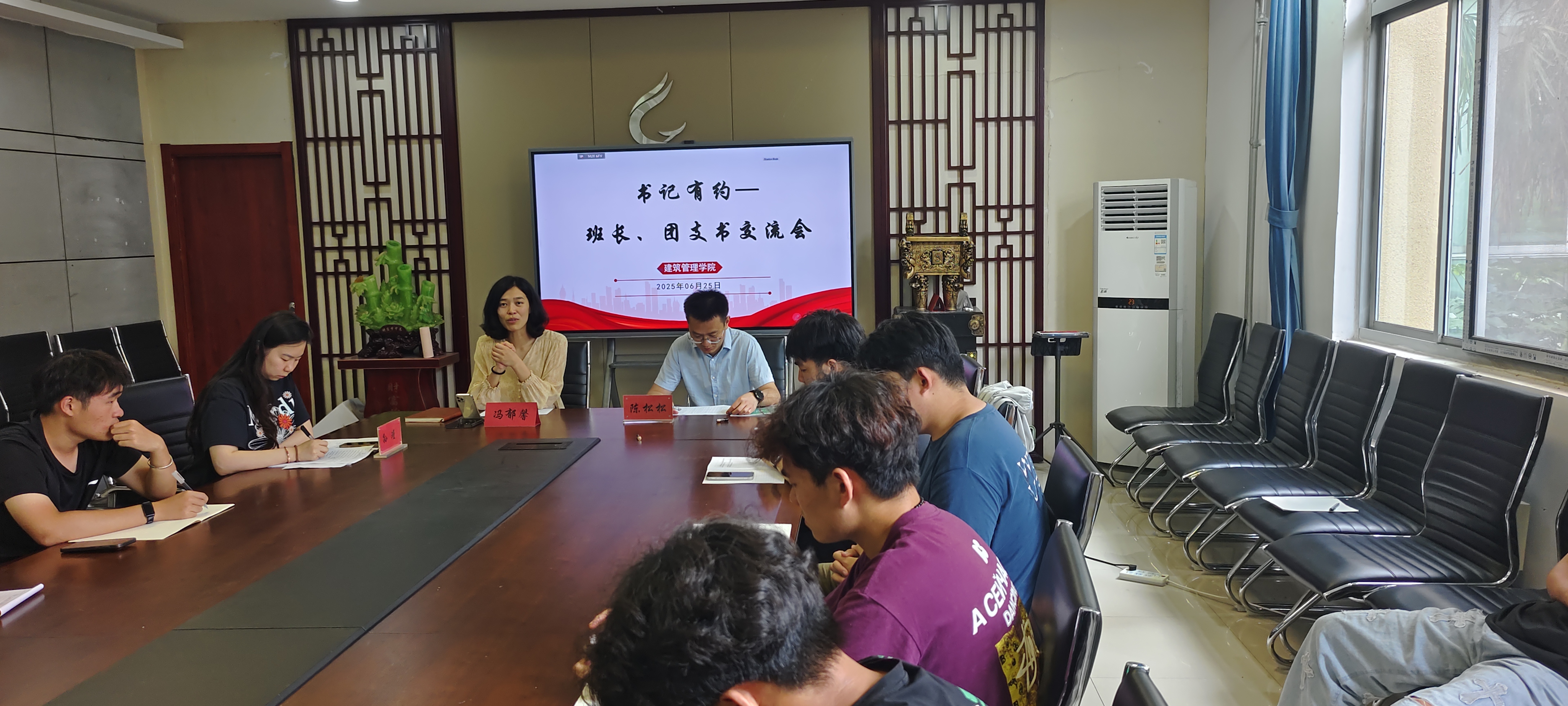 2025年6月27日,建筑管理学院举办“书记有约”之班长团支书座谈交流会。学院党总支副书记冯郁鑫、辅导员陈松松、孙瑾及全体在校班长、团支书参会。交流会围绕学习工作困惑与生活建议展开深度对话,旨在通过实践反思优化班级建设与学生职业规划。